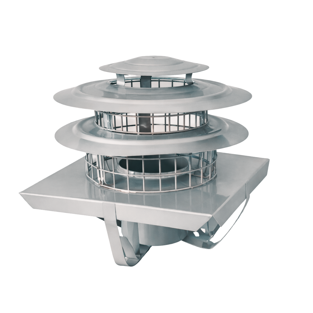 Designed for use on a Square Chimney Pot or where there is no Chimney Pot, with Flexible Flue Liner.